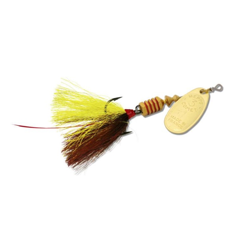 Anglers have been asking for a fuller, dressed treble,Mepps spinner. The Comet Longtail responds tothat demand. The classic Comet with its mediumrunning depth blade is the only spinner on the marketoffering a detachable hook incorporated into the bodymechanics. It is now available with a much more ample and longer dressing on the treble hook, making the new bait a bigger mouthful with a pulsating bushy bucktail camouflaged hook trailer.The Comet has not been previously available in dressed treble hook. The selection matches blade colours to tail dressings to complement each other. Feel free to experiment and contrast by mixing and matching the blades and tails. The Comet design allows for easy hook changes by switching the tail out. You can also replace the dressed treble with a trailing snelled hook & bait, small body bait or fly. An option only the Comet spinner allows for.