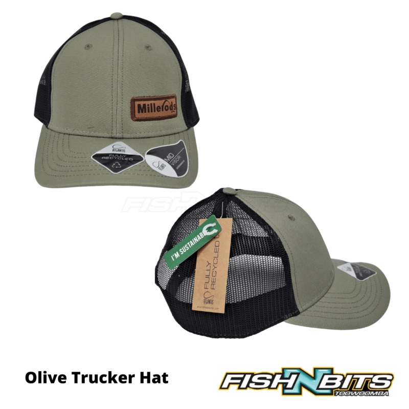 -Foam padded black Polyester front panel with white embroidered Millerods logo
