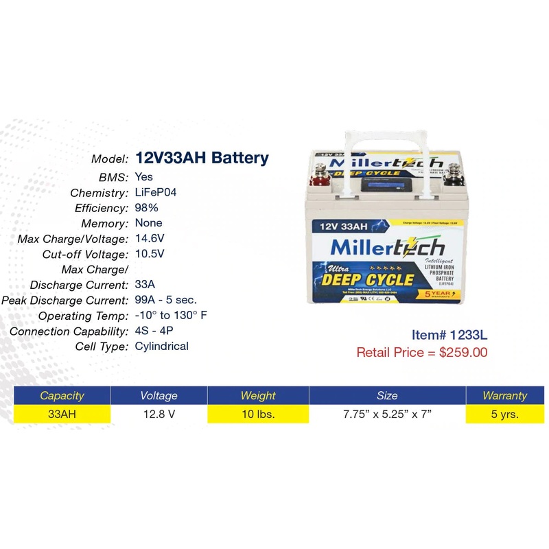 Be the first to review “Millertech Lithium Battery- 12 Volt 33 Amp Hour Lithium Battery”