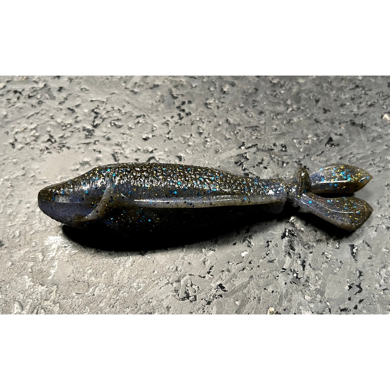 Super heavy weight swimming stick bait designed to give a different look from a cover scat. Rear fins kick as the bait falls, and side planing fins keep the bait is a glide posture.
