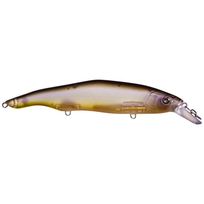 Adding a layer of versatility to the Nishine Lure Works Erie 115SD Jerkbait is an adjustable weight attached to the front treble hook for customized action. Utilizing the full weight gives the jerkbait a slow sinking action, while removing the weight imparts a slow floating motion, and lastly, cutting the weight in half provides reliable suspending performance. Outfitted with only the finest hardware, it includes stainless steel split rings for added durability, a Nishine original snap, and Japanese made Ichikawa Kamakiri treble hooks that provide superior hook setting performance. Complete with 3D eyes, gills, and scale patterns, the Nishine Lure Works Erie 115SD Jerkbait is a smart addition to every anglers jerkbait arsenal.