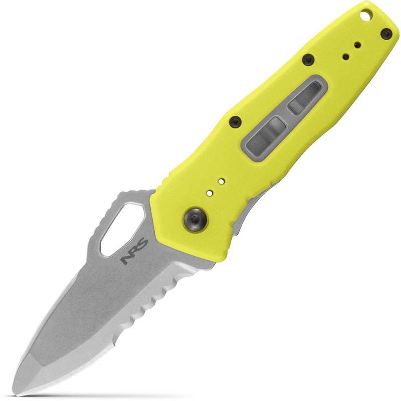 The NRS Photic Knife is compact, lightweight, and versatile for water safety and outdoor adventures. Its durable stainless steel blade features a sharp cutting edge for precision tasks and a serrated edge for slicing through rigid materials like rope or webbing. The blunt tip ensures safety during use and doubles as a screwdriver or prying tool in emergencies. Its sleek, low-profile design makes it ideal for kayakers, paddlers, and rescue professionals.
