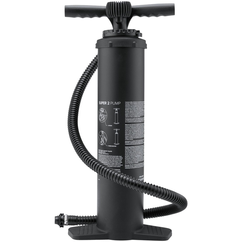 The NRS Super 2 HP Pump is a patented double-chambered pump for optimal power with minimal effort. Easily inflate high-pressured inflatables up to 25 psi. The pump features an Air Max mode and a Power Booster mode. Air Max is for maximum output. Simply push the pump down completely and then press the Air Max button. This engages the larger diameter outer chamber for inflating in the high-volume mode. Alternately, you can press the Power Booster button to engage the smaller diameter inner chamber for inflating to high pressure with less effort.