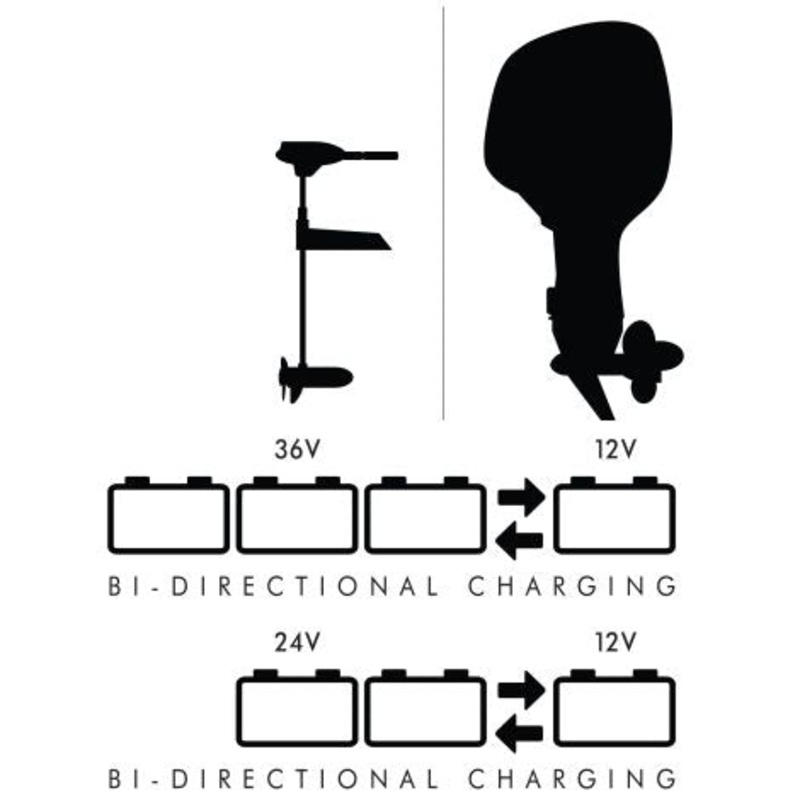 - Robust Power Delivery: Delivers up to 500 watts of power, providing a maximum of 40 amps for the cranking battery and up to 25 amps for trolling batteries.