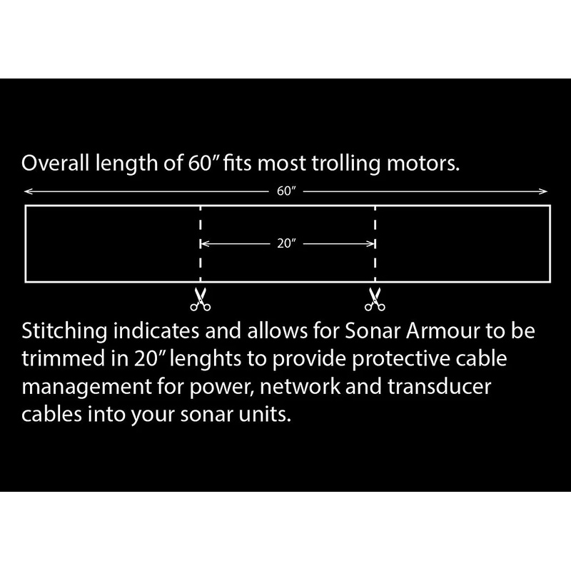 Larger wrapped diameter allows for both transducer and forward facing sonar cables to fit comfortably within the Sonar Armour. Overall length to fit most trolling motors and can be trimmed for different cable organization applications.
