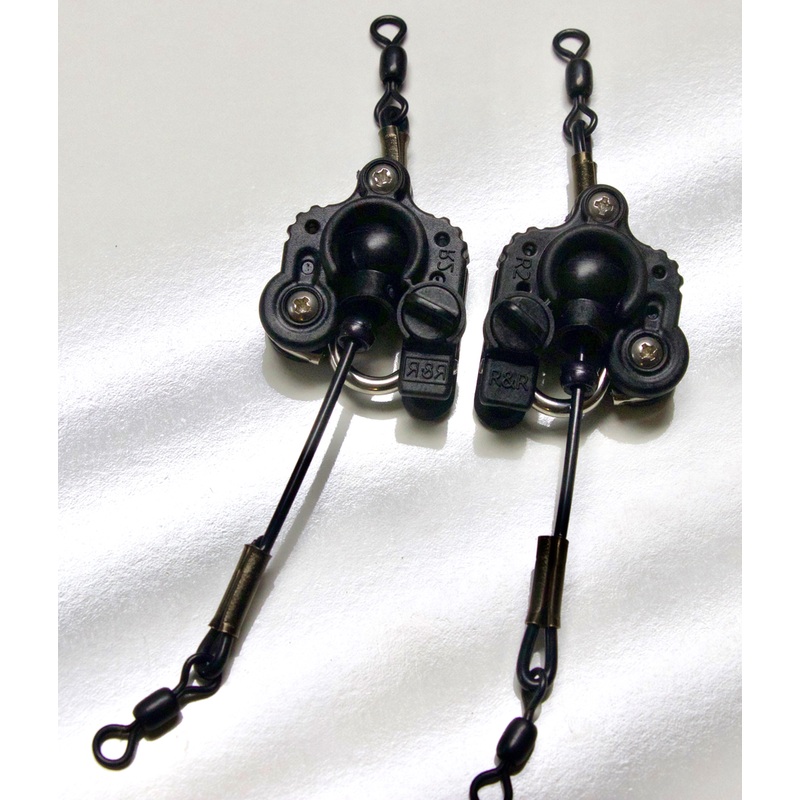 R & R Tackles R2/2 Set of Mirrored (Port and Starboard) Outrigger Clips on monofilament leashesfeature an innovative improvement over the traditional metal release clips. Each outrigger clip features a super-tough and easily adjustable tension mechanism that can be manipulated to provide precision levels of tension. These clips are designed to be crimped in place on outrigger monofilament and are ideal for tournament trolling applications. Highly-polished, large-diameter arm makes it easier to clear off weeds from lures and baits. No floss loop or hangar is needed. Large clearance allows you to crank wind-on leaders as large as 500 lb. test through the arm. Port and Starboard Clips (marked on the back of the clip with a P or S) make for optimal release of line away from the boat. The bead should face the cockpit when installing.Made in the USA.Patent Pending.