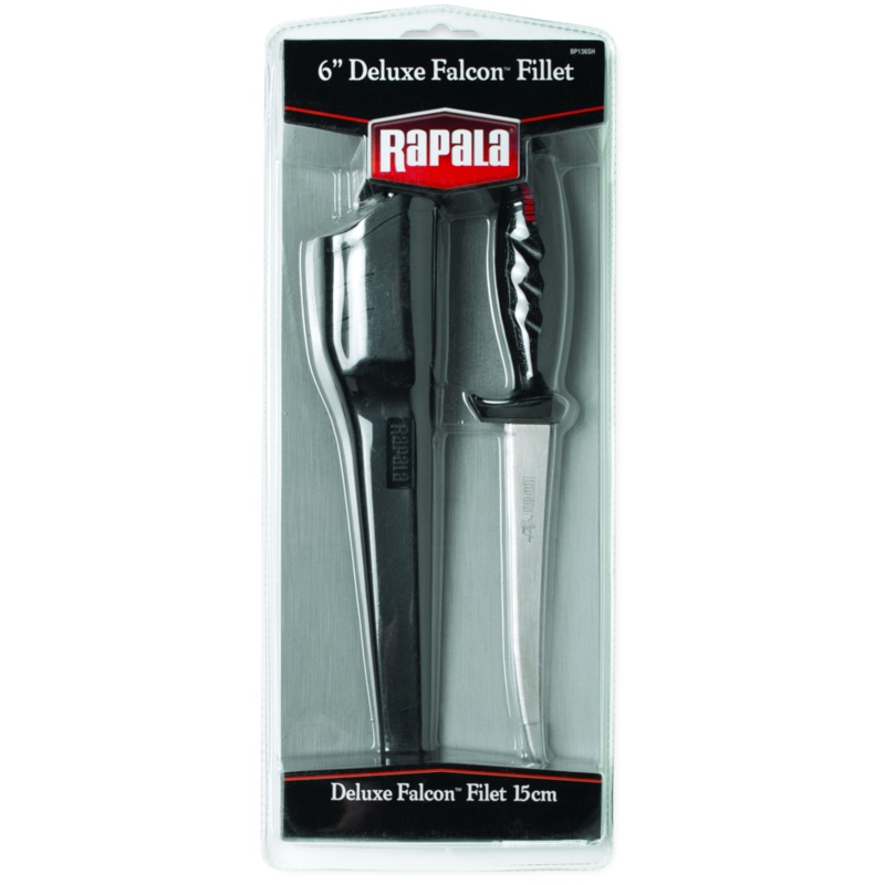 The Deluxe Falcon Fillet offers superior filleting at a value price. Contoured handle, comfortable and durable enough for arduous filleting tasks, features a slip resistant texture, matched with flexible, stainless steel blade that makes short work of filleting. Integrated finger guard offers protection from slippage during messy fillet sessions. Redesigned multi-purpose hard sheath protects the blade and user. Fine grade ceramic-sticks sharpener is built-into the sheath allowing “in-the-field” sharpening.