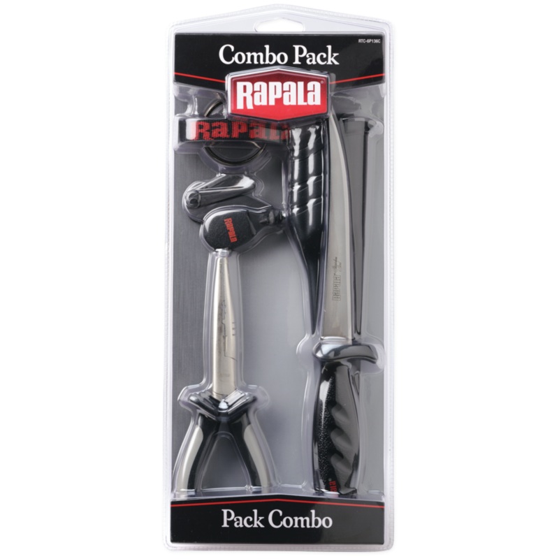 6-1/2″ Fisherman’s Pliers, Falcon Fillet Knife/Sheath and Rapala Fishing Clipper.