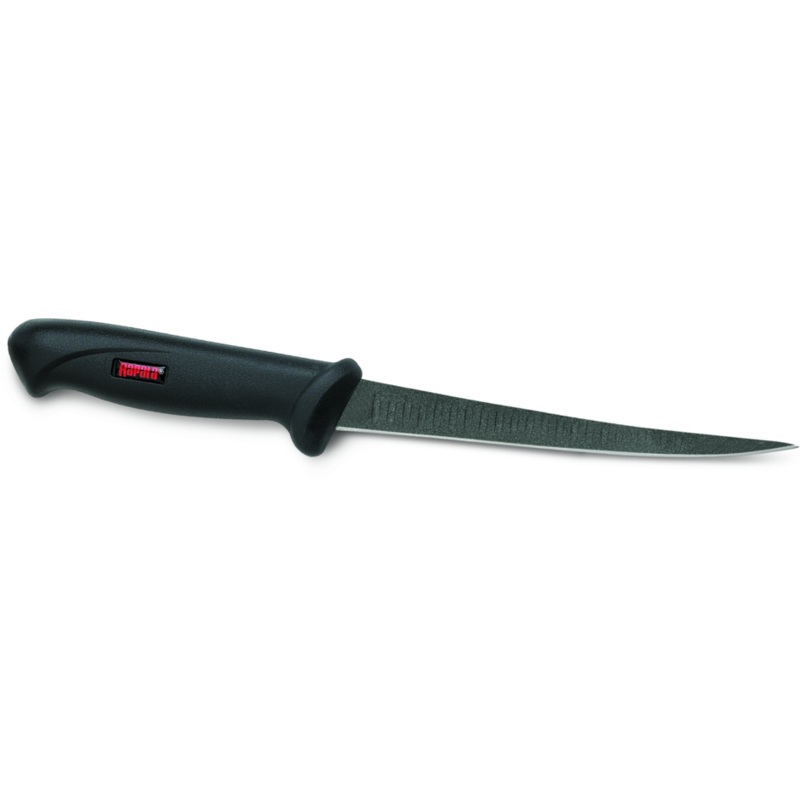 Effortlessly fillet with scalloped blade and non-stick treated blade. Scallops introduce air between blade and fish to prevent sticking and tearing. Choose from a classic fillet blade or one like those favored in the northwest for large species like salmon & trout. Easy-clean open sheath.