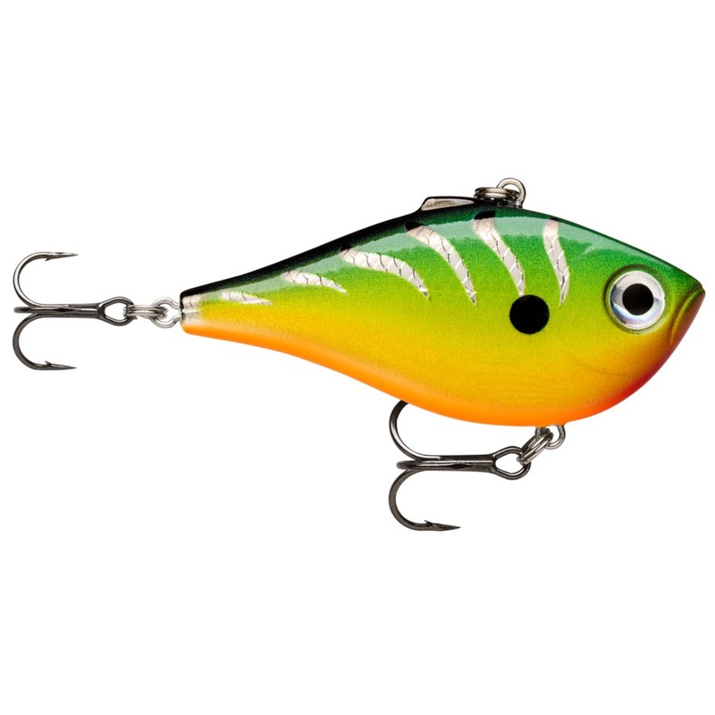 The Rippin’ Rap features a lipless, deep belly profile designed to crank, swim and rip. With its skinny sides this bait flutters on the drop. Hard vibrating action on fast or slow retrieves accented with a loud, distinctive BB rattle system. Textured scales and gills with deep-set 3D holographic eyes. Super easy to fish, the Rippin’ Rap is perfect for pulling over or through grass, bouncing off timber, and Rippin’ through rocks. Long-casting with variable running depth, this one is just right for clear water where the look is key or for fishing-stained, dark water where just the right sound is essential. Fast piercing VMC black nickel hooks seal the deal.