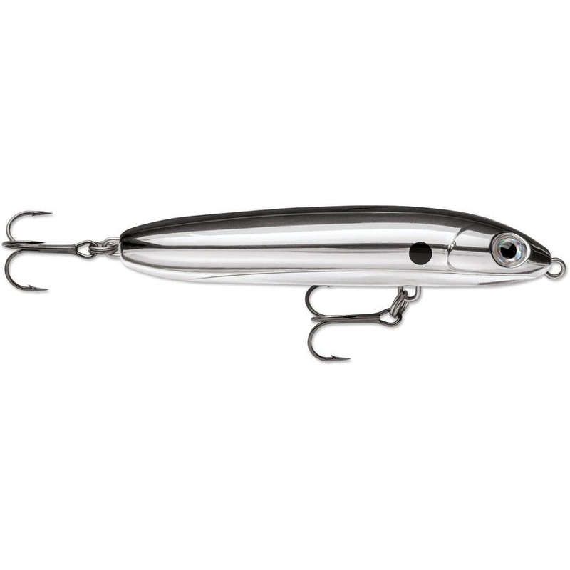 This topwater bait features an exclusive design that radically alters the action of the lure. V-Rap body design combined with tail-weighted balance allows the lure to cut quickly with the snap of the rod, ending with a soft, long glide on a slack line. Translucent Body. 3D Holographic Eyes. Quick Turning Walk-the-Dog. VMC Black Nickel Round Bend Hooks #3