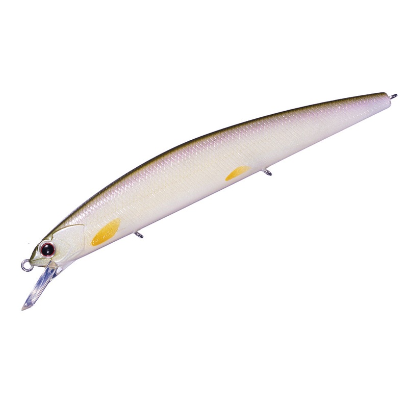 A 13cm big minnow “RUDRA” with special power that is completely different from the previous big minnows. In particular, the fusion of high-pitch action that goes beyond the dimension of just winding and strong flushing with a flat body is as close as possible to the original bait movement. The effect is such that even the smart, experienced Big Bass has a fairly high probability of getting a bite. And in this floating model, it was set to a high float to make the most of its advantages. Of course, the chance loss due to lack of flight distance, which tends to occur with floating big minnows, is completely eliminated by moving the center of gravity, low center of gravity fixed weight, and body design that takes air resistance into account. As a result of choosing a weight pattern that clears both flight distance and action at the highest level, we ended up with a weight reduction of about 3g compared to suspend. In terms of performance, it is also ideal for approaches around the cover, and by stopping the retrieval at the moment it lightly hits the cover, it exhibits high snagless performance to float and dodge. And you can feel the amount of bytes you can get because you don’t get stuck. In addition, even in flat areas where the space from the weed surface to the water surface is narrow, you can keep a shallow range by twitch & pose with an awareness of floating, or just stop & go with winding. This method can quickly cover a wide area and is an effective technique for big basses. In addition, the shuddering motion of levitating towards the surface of the water strongly stimulates the bus and doubles the bite. And the strong buoyancy makes it easy to create ripples on the surface of the water, and it is effective even when used as a top water. In this way, the floating that is physically advantageous in all actions increases the feeling of sharpness, and even in dirt performance, it shows a sharp enough to show the belly. And the tight approach to many of these techniques and covers can be maximized in the high float setting.
