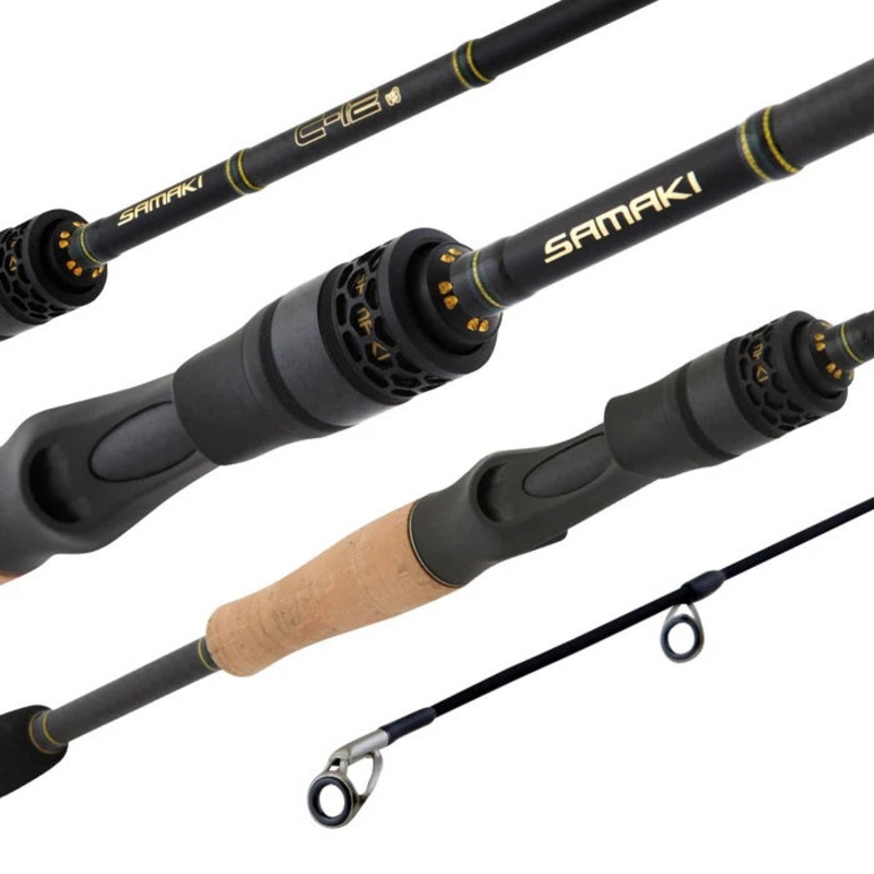 The Samaki C-12 V3 Baitcast Rod series delivers the finest, lightest rods ever in the range. With 40-tonne honeycomb weave prepreg blanks, it offers unmatched casting power and a superb weight-to-strength ratio. Featuring ultra-light Fuji KW & LKW Sic guides, precise cork grips, and premium gold accents, this rod excels in various applications. The C-12 V3 includes five models, from 6’8″ light rods perfect for bass to 7’0″ heavy-duty models designed for impoundment barra. Built with 4-axis Japanese Toray carbon and custom super hard EVA grips for ultimate durability.