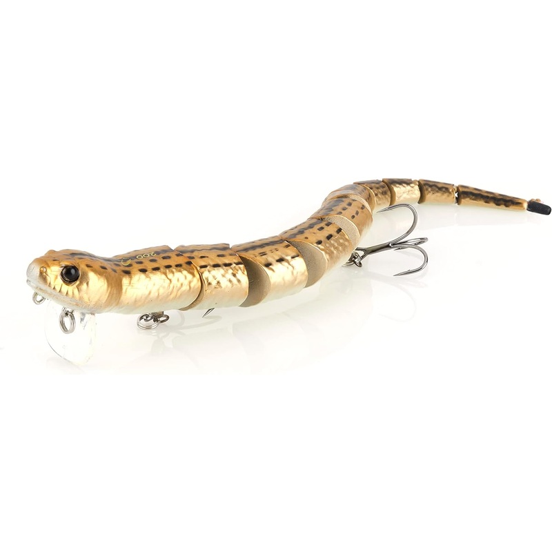 Based on a scan of a real snake. The perfect baby snake imitation, with the most realistic swimming topwater action. The lure swims with a wide S action either on the surface or just below, depending on where you attached the line to the lure.