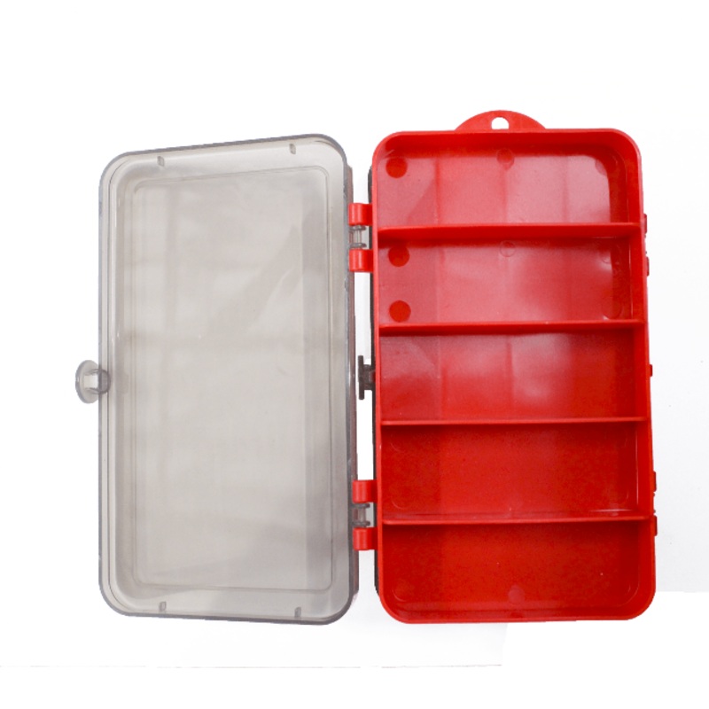 - Our maroon fishing tackle box features 13 front and back sections to keep your gear organized and accessible.