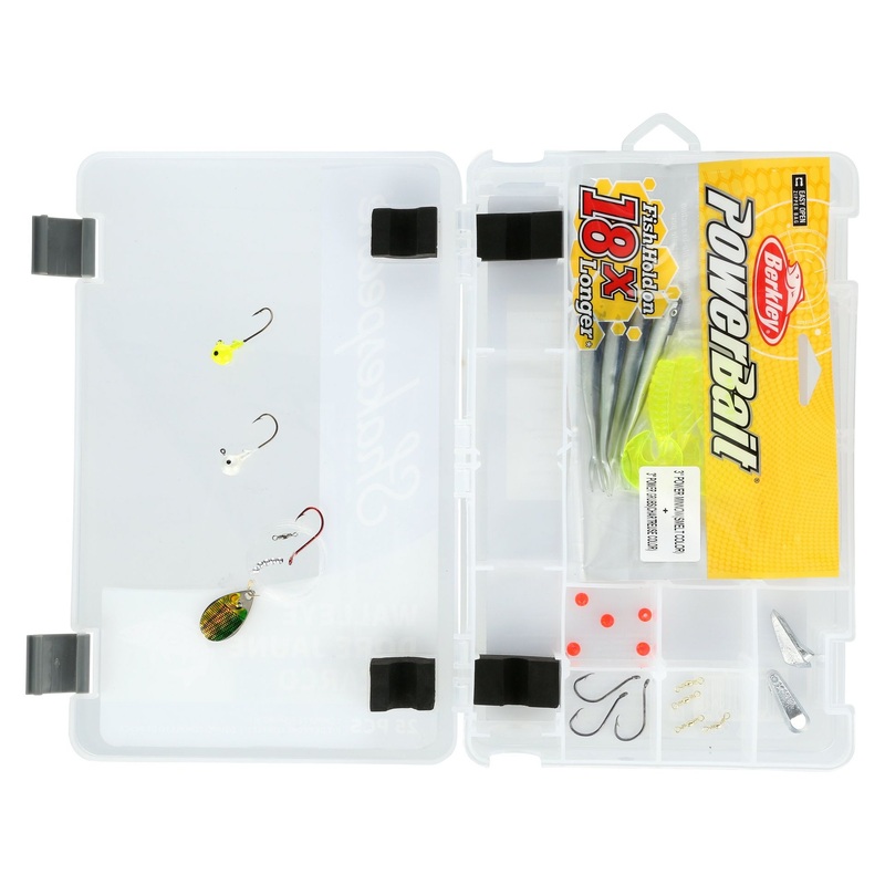 With a Shakespeare Catch More Fish Lake Pond tackle box kit, anglers have the ideal assortment of bait and tackle for their next fishing adventure. The assortment includes top-branded Berkley PowerBait bait to attract fish with scent dispersion. These tackle boxes also make transportation and storage hassle-free with a built-in rod holder design.