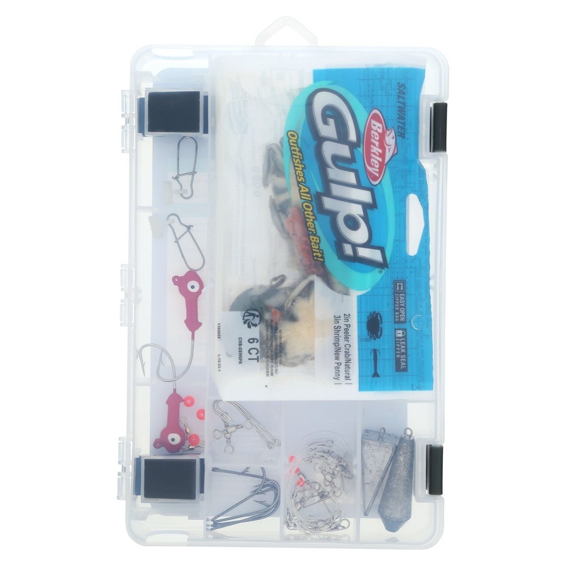 With a Shakespeare Catch More Fish Surf Pier tackle box kit, anglers have the ideal assortment of bait and tackle for their next fishing adventure. The assortment includes top-branded Berkley Gulp! bait to attract fish with scent dispersion. These tackle boxes also make transportation and storage hassle-free with a built-in rod holder design.