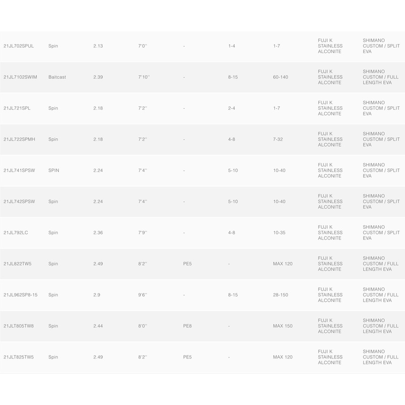 The Jewel has been upgraded to a T45 blank construction now incorporating higher carbon content to assist with faster blank recovery and response. Quality Fuji Alconite K guides have also been utilised to deliver anglers premium casting performance and value. The 2021 Jewel range has 7 new additions, increasing the range to 25 models that includes an innovative 5-piece Travel Stick Bait rod. This series features a great new black and white cosmetic that will match up perfectly with a range of Shimano reels. Whatever the destination, fishing style and species there’s a Jewel to suit! 21JL561JOH5 , 21JL541JOHH8 , 21JL6102BUKU , 21JL661JSLOW