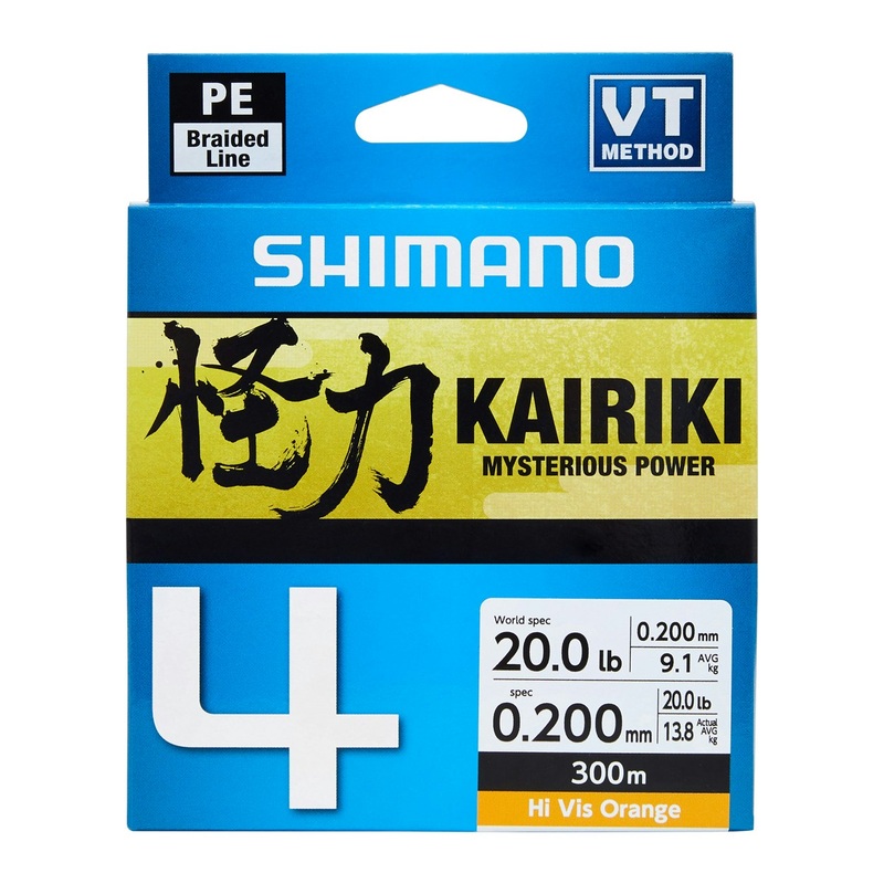 Kairiki 4 utilises the same VT Construction Method of braiding technology as Kairiki 8. Featuring four carriers, the new tight weave construction is created by applying high tension at opposing directions during the braiding process. The fibre is weaved evenly at all angles, resulting in a smoother finish and a reduced diameter. This low stretch, long casting braid is an excellent choice for finesse fishing, where smoothness, sensitivity and castability is fundamental. Kairiki 4 is available from PE 0.6 (6lb) to PE 5 (50lb) in 150m and 300m spools, in the all new Hi-Vis Orange colour.