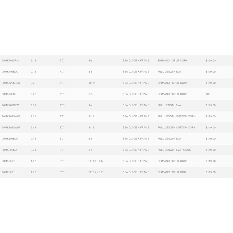 A favourite amongst anglers, the Maikuro series is the perfect all-round graphite rod series that represents great value and performance. Now, the series has been given a sleek cosmetic refresh as well as some great componentry upgrades. The blank has been upgraded to a 30T Toray graphite blank, which gives the angler a crisp feeling rod when working any size lure. The guides have also been upgraded to Sea guide K frames to add a new look and feel, while the butt end of the rod still features the classic Maikuro style of mixed full-length cork and EVA butts across different models. 20MK662OHSJ