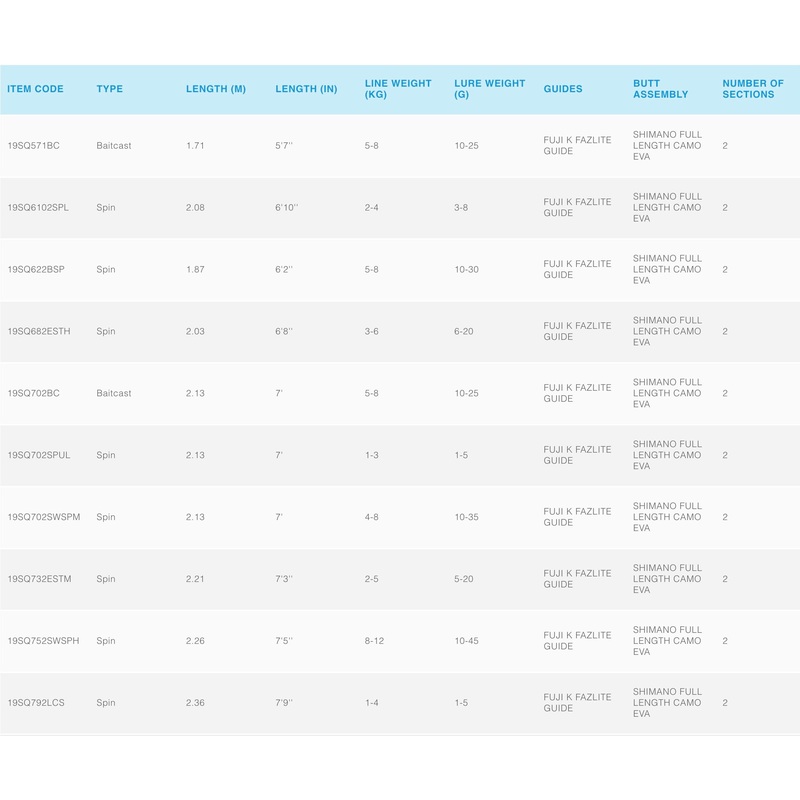 Squidgy soft plastics changed the face of recreational fishing and now Shimano Australia has developed ten superb rods for getting the most out of this country’s favourite soft plastics. What’s available in this 10-rod lineup runs the gamut from freshwater natives to offshore fishing for reds. Built on T45 graphite blanks, the lengths, tapers and Fuji componentry have been carefully selected to bring out the very best in these amazing lures, and at a price that won’t break the bank. 19SQ571BC , 19SQ702BC