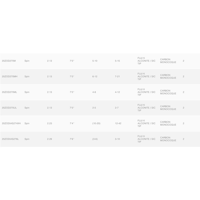 For 2020, the Zodias has undergone a significant upgrade and now features Shimano’s exclusive Carbon Monocoque Butt for the ultimate in sensitivity. The Full Carbon Monocoque rod butt is made of a hollow carbon construction, eliminating the use of EVA from the rear grip. This results in a very lightweight construction that is extremely sensitive and improves vibration transmission through the rod blank to your hand when working a lure. To provide the exact balance between power and finesse, the 2020 Zodias continues to feature Shimano’s Hi-Power X graphite blank and Ci4+ Reel Seat and upgraded Fuji Stainless Alconite K guides with a SiC tip. With 12 models in the range that have been engineered with specifically tuned actions for a range of lure fishing styles. The rods are finished with the slick red and black cosmetics that have made the Zodias series a perfect match for many Shimano reels. 20ZOD1510M2 , 20ZOD175HA , 20ZOD166ML
