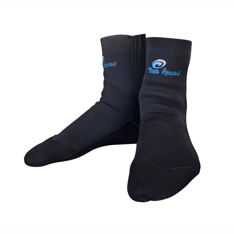 The sole of Rob Allen’s 3mm neoprene socks is constructed of abrasion-resistant Supratex material, which is anatomically designed to provide warmth, comfort, and padding for the diver.