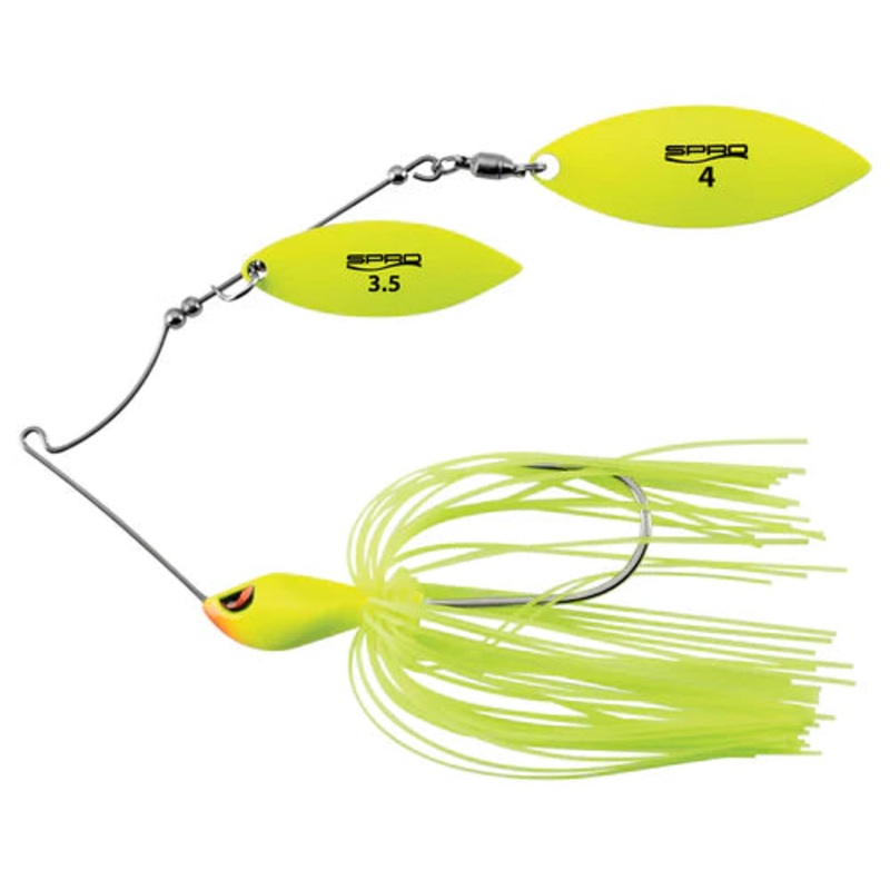 The SPRO Blade Spinnerbait is made with Gamakatsu Nano Alpha Coated hooks for durability and practical functionality. Each bait comes equipped with ball bearing swivels, SPRO Mean Eye head design, and flashy willow blades plated with gold and nickel. This plating showcases the size printed on the side of the blade for easy identification. The bend in the body also prevents the blade from tangling on the line. This spinnerbait is a must-have for clear and stained water applications.