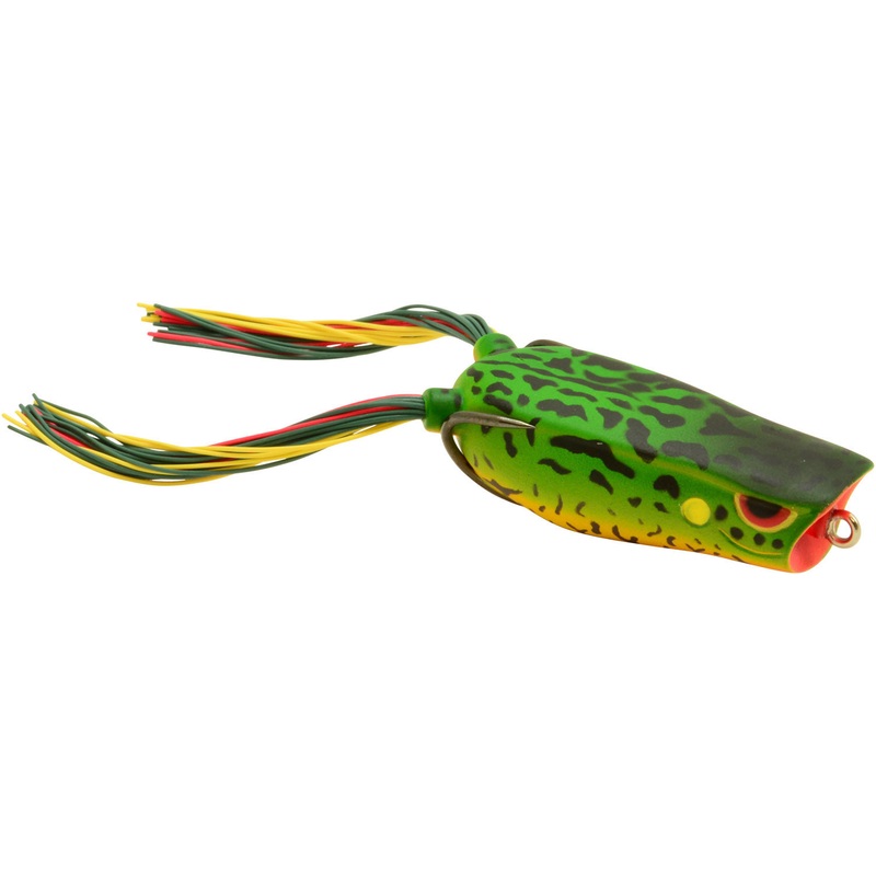 The Spro Bronzeye Poppin Frog 60 is designed to attract bass from all types of cover with its loudmouth. Designed by frog master Dean Rojas, the Bronzeye Poppin 60 pop’s chugs, spits, pops, and walks exceptionally well. Thriving in all scenarios from matted vegetation to open water when skipped under docks, in and around cover. A soft, easy collapsing body with a stout 3/0 Gamakatsu EWG Double Hook fits this baits size perfectly, providing tremendous hookup and landing percentage. A sealed, weighted belly makes this bait land right side up without taking on water cast after cast. Weighing in at 1/2oz, this frog easily casts even with a heavy braided line. Spro offers tons of realistic and unique colors to help you choose the right one for the job. When advancing your frog fishing game, put a Bronzeye Popping Frog 60 in your hands and get to work!