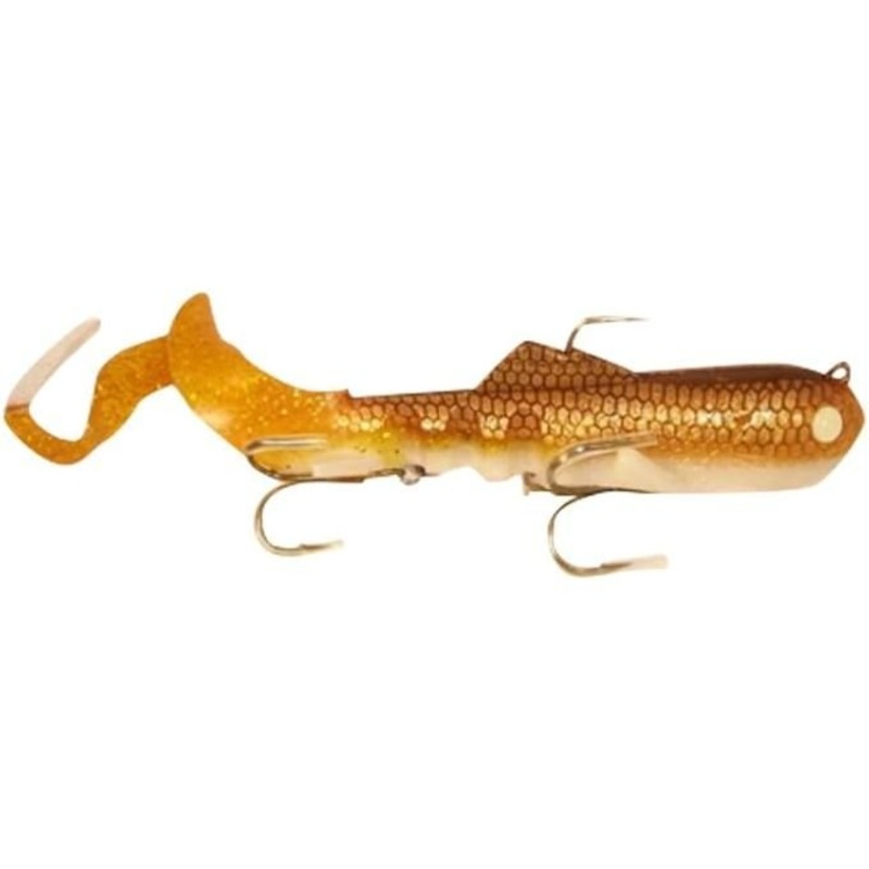 SuperD swimbait are a 100% soft lure. Our lures use a tough full coil internal harness that can accept two muskie treble hooks. The second belly hook is further back towards the tail for a better chance of hooking up a short strike muskie or northern pike. It is balanced with a jig head so it glides at a gentle 20 degree angle on the fall and swims horizontally when jerked or reeled in. The MAG sized musky SuperD swimbait can be used as a crankbait, jerkbait or jig. When retrieved, it rocks back and forth as the curly tail waves frantically, a combination that drives large freshwater game fish crazy. Fish the SuperD swimbait with a slow, medium or fast retrieve while twitching and jerking over weeds, on weed edges and on or around structure. The SuperD swimbait comes in 5oz or 8 oz. weights and comes with a hand cut tails. Also comes with holographic eyes. The musky SuperD swimbait can be counted down at about 1 foot per second allowing you to put the bait in the fishes face at any depth. Hand poured musky and pike catching colors, 3D Eyes, Fins, Gill Plate, Scales, Softer plastic for an even more realistic baitfish movement. Our innovations in musky lures are your key to success.