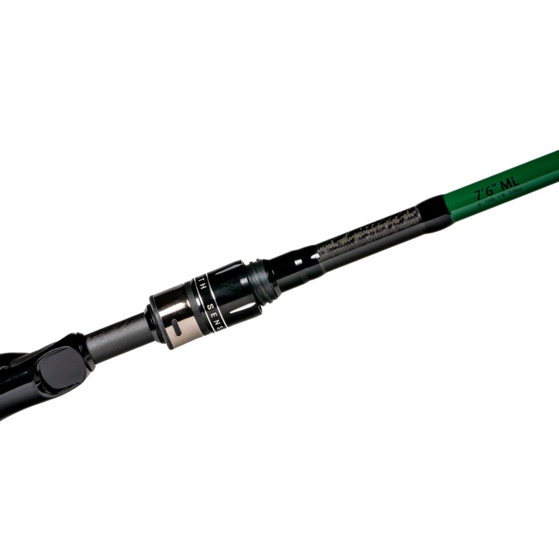 Modern design meets tournament-grade responsiveness. The Team 6 Series is built on a 30 Ton Japanese Graphite blank with a carbon fiber handle that transmits every vibration. Fuji Concept-O guides, a black blank-through reel seat, and a teardrop hook keeper give it a sharp look and an even sharper performance edge.