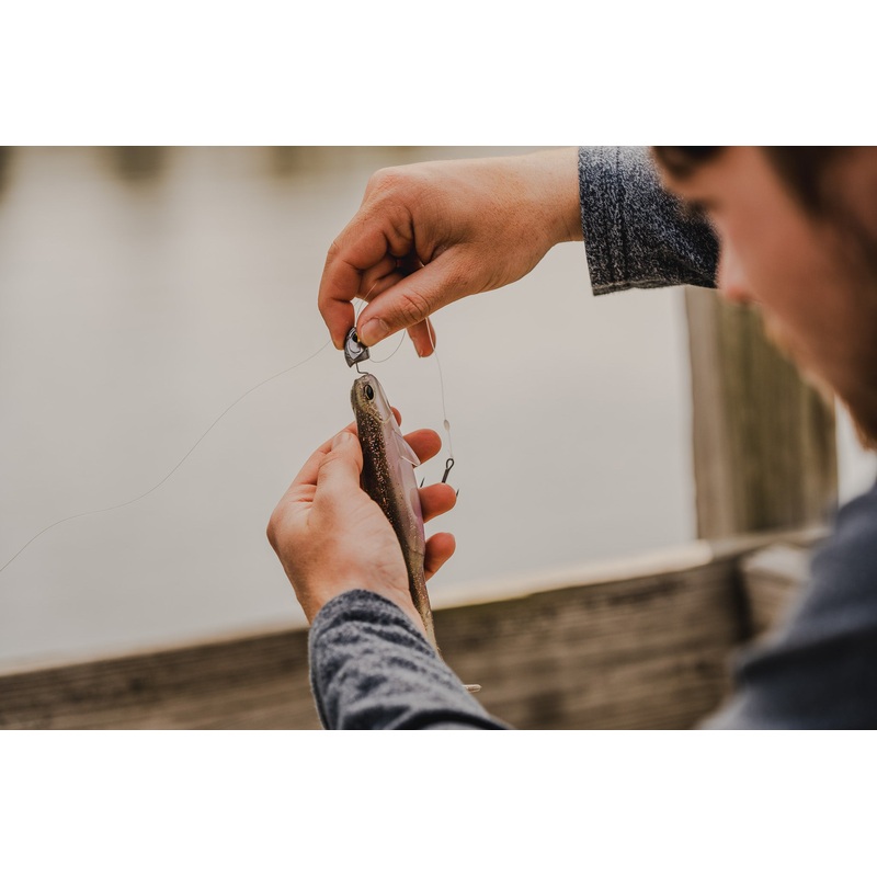 The Treble Head Line-Thru Jig Head was designed for two reasons, to make your soft plastic swimbait last longer, and to increase your hook up ratio. The unique design allows you to run your line through the head and tie on your most trusted treble hook. The built in screw lock provides an easy, secure, way to rig your soft plastic. Simply embed your treble hook into the top of the swimbait and start casting. Once you hook a fish, the treble hook will come loose from the swimbait, keeping your favorite swimbait intact and ready to use on the next cast. Pairs perfectly with our Divine Swimbaits, Whale Swimbaits and if youre looking for a bigger profile, throw it on a Sweep.