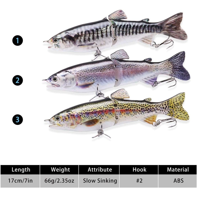 • Metal Joint Lifelike Lures – Designed with metal joint body, TRUSCEND fishing lure can sink slowly and moves flexible in water. In addition, life-like swimming actions make it attracting more catches and provoking predator fish to strike.