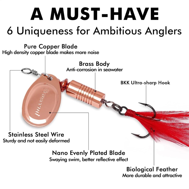 - Vigorous Spinning Action:Features a unique free-spinning blade with an electroplated technique, enhancing reflectivity to attract fish. Produces powerful sonic vibrations that call fish from different areas.