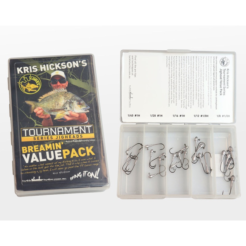 A selection of premium quality TT Lures Tournament Series jigheads, hand picked for targeting bream on soft plastics. Built on Gamakatsu hooks, this pack contains five each of five of the most popular hook and weight combinations for bream, packed in a quality clear plastic tackle tray.