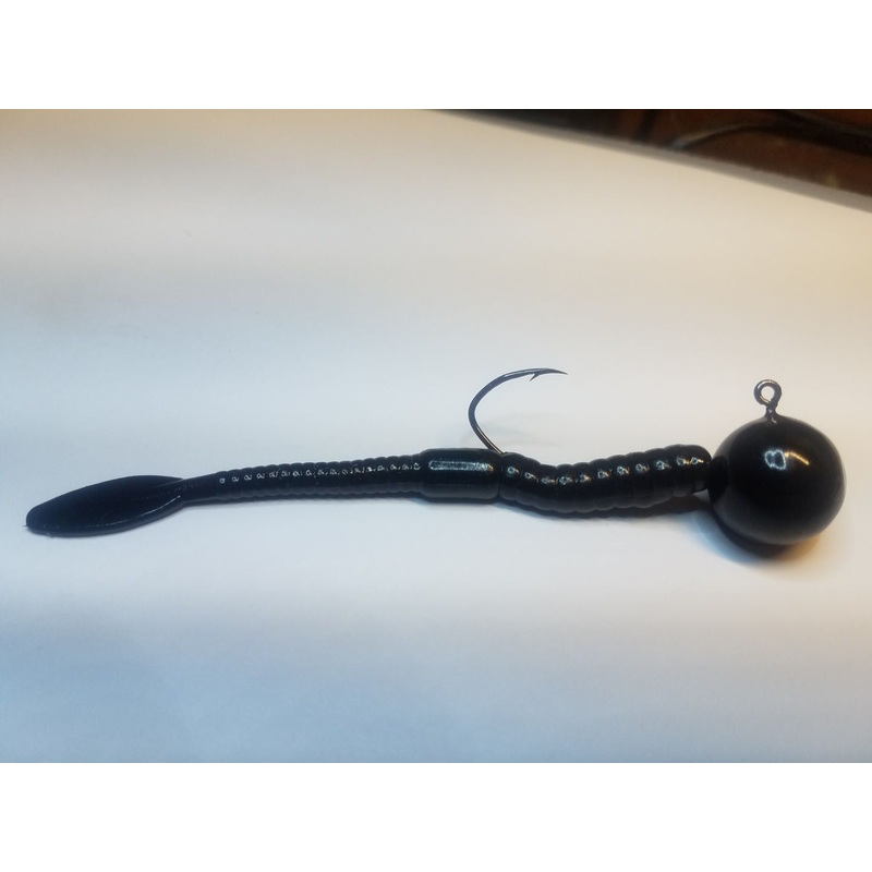 1oz ball jig NO more lead collar to split your soft plastic,a wire keeper holds the worm on evenBETTER!!!