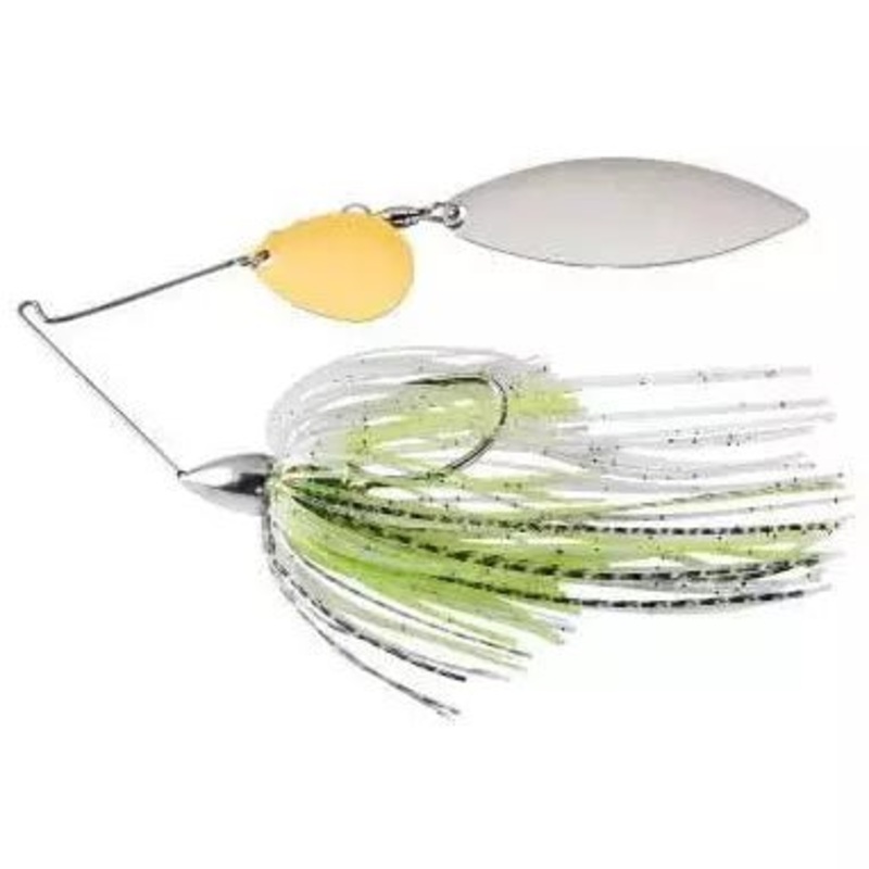 The War Eagle Tandem Willow Nickel Frame Spinnerbait is a wire spinnerbait. The combination of Willow and Colorado blades and a nickel frame produce outstanding thump and flash. The layered premium silicone skirts are hand-tied to ensure correct strand orientation. Equipped with super sharp Mustad NeedlePoint Hooks help increase your hook up ratio, and Sampo swivels. Available in 8 colors.