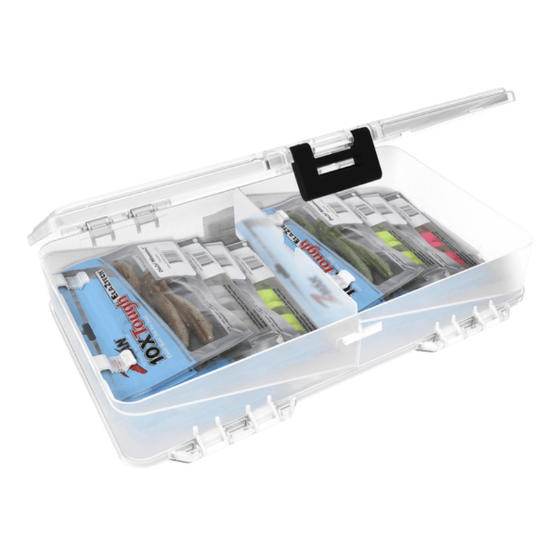 Spend less time searching and more time catching with the Plano Worm Stowaway Utility Boxes. This space-saving storage system provides superior organization for your plastic baits; and even though it’s 50% deeper than a standard utility box, it fits neatly into most 3700-size tackle bags. This double-sided box comfortably holds 8(3600 model)-16 (3700 Model) bags: in angled, easy-to-arrange compartments that give instant access to the baits you need. In addition, you’ll find 2 sets of handy clips per compartment to hold the bags neatly in place, like an on-the-water file cabinet. Transparent lids for easy identification of contents