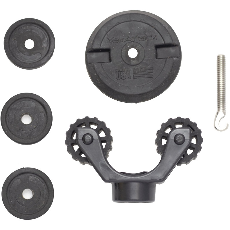 This kit includes three black spacers. The spacers adjust the height of the paddle so the j-hook doesn’t contact your paddle shaft. Start out using one spacer and tighten it until it is snug. If the top of the metal j-hook contacts your paddle shaft, add a second spacer. Do not over-tighten.