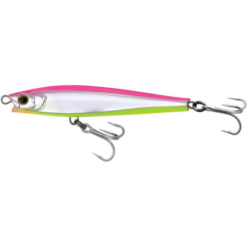The Yo-Zuri Hydro Monster Shot is the most versatile hard bait on the market. It can be fished from the surface to the bottom, and everywhere in between, in a 100+ ft of water. It’s a heavy weighted lipless stick bait, that falls in a horizontal posture, with a side-to-side wobble that perfectly mirrors a dying baitfish. On a straight retrieve it has wide wobble action, when jigged or twitched it has a sharp darting action and when burned across the surface, it has a skipping action that resembles a fleeing bait. Through wire construction, a durable lead filled body and triple strength saltwater grade treble hooks, quality throughout. It comes in 7 color patterns and 4 sizes to cover everything from Spanish Mackerel and Bonita inshore, to Blackfin and Yellowfin Tuna offshore. The thin profile mirrors baits like Sand Eels, Sardines, Ballyhoo and Spearing, while giving you the weight to make long casts to spooky fish. There is nothing else like it on the market! 7 colors to choose from.