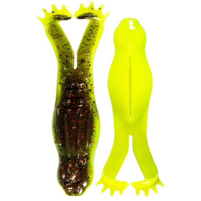 Buoyant enough to float a standard 5/0 EWG hook, the 4-inch GOAT ToadZ features a wide, bulky body and streamlined profile which combine to greatly enhance castability. The customized cupped kicker tail design from the original GOAT bait series maximizes mobility and flow at slow, medium or fast retrieve speeds. Sculpted with a keel-shaped ‘hull,’ the bait’s “V” belly yields stability and a quick-planning action on the retrieve. Topside, four dorsal ridges ride the ToadZ’ back, guiding rigging with a single or double frog hook. Ridges also help protect exposed hook points, preventing fouling in grass or other cover while still easily penetrating bass jaws.