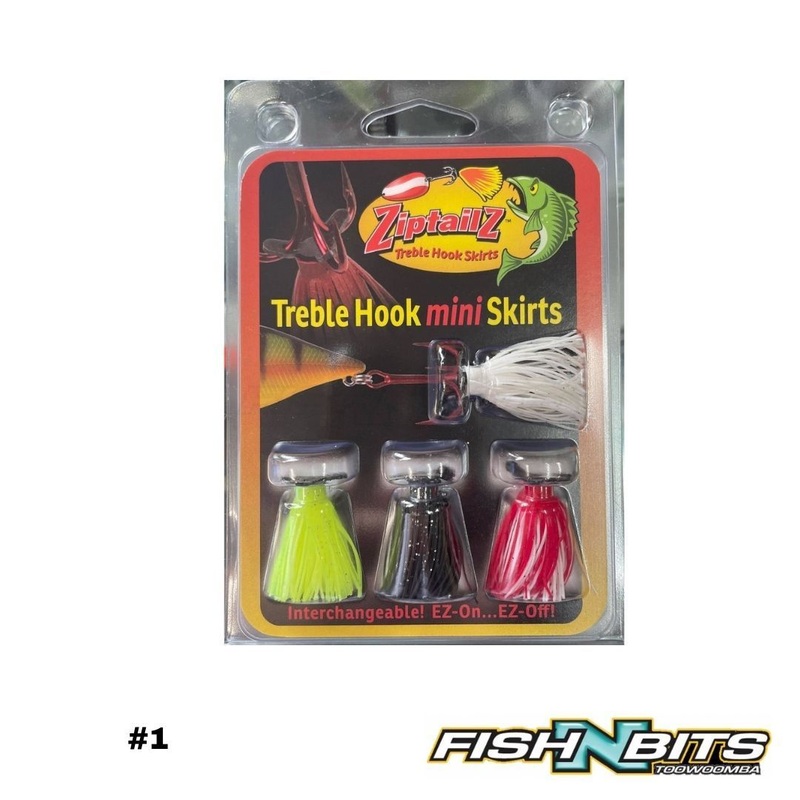 Ziptailz “Ultimate Fishing Skirts” are used on both treble hooks and single hooks to add color, add motion and change that same old boring presentation. One skirt does it all. When the fishing gets tough…the tough use Ziptailz”